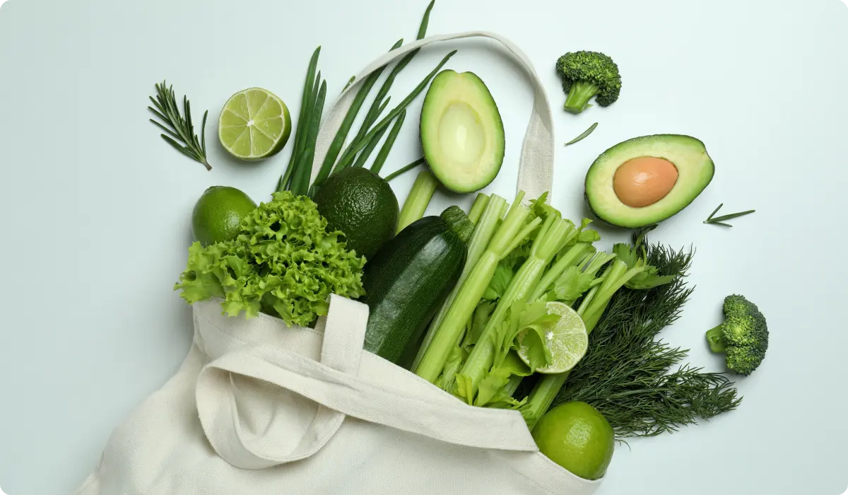 1. Frukt og grønnsaker: Disse inkluderer frisk frukt og grønnsaker, spesielt grønne bladgrønnsaker i kostholdet. Omtrent 5 porsjoner av disse på en dag vil sikre at kostholdet ditt er rikt på vitaminer, mineraler, fiber, jern, kalsium og antioksidanter. Bladgrønnsaker som grønnkål, spinat, bok, choy etc har også høyt vanninnhold. Når du begynner å tilpasse deg denne nye dietten, ville det være fantastisk å teste noen av favorittoppskriftene dine med disse fruktene og grønnsakene. Dessuten kan mange ingredienser erstattes som en erstatning for å gi en lignende tekstur og konsistens til ikke-veganske matvarer. For eksempel brukes jackfruit som en kjøtterstatning for sin tekstur, avokado og bananer kan brukes til å lage moussen, iskremen osv.